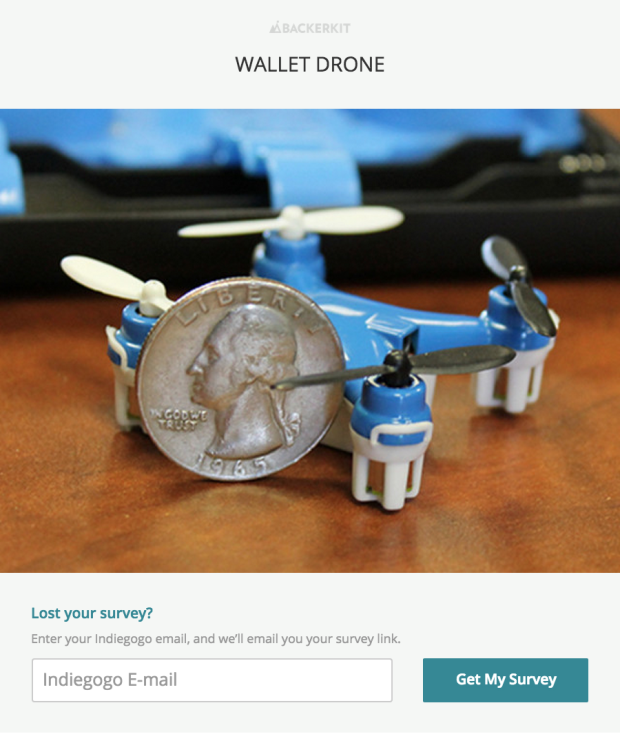 If you can't locate your original login details you can click here: https://walletdrone.backerkit.com/ and enter the email address associated with your Indiegogo account and we will email you a new link to login and check your details and/or make changes as needed.